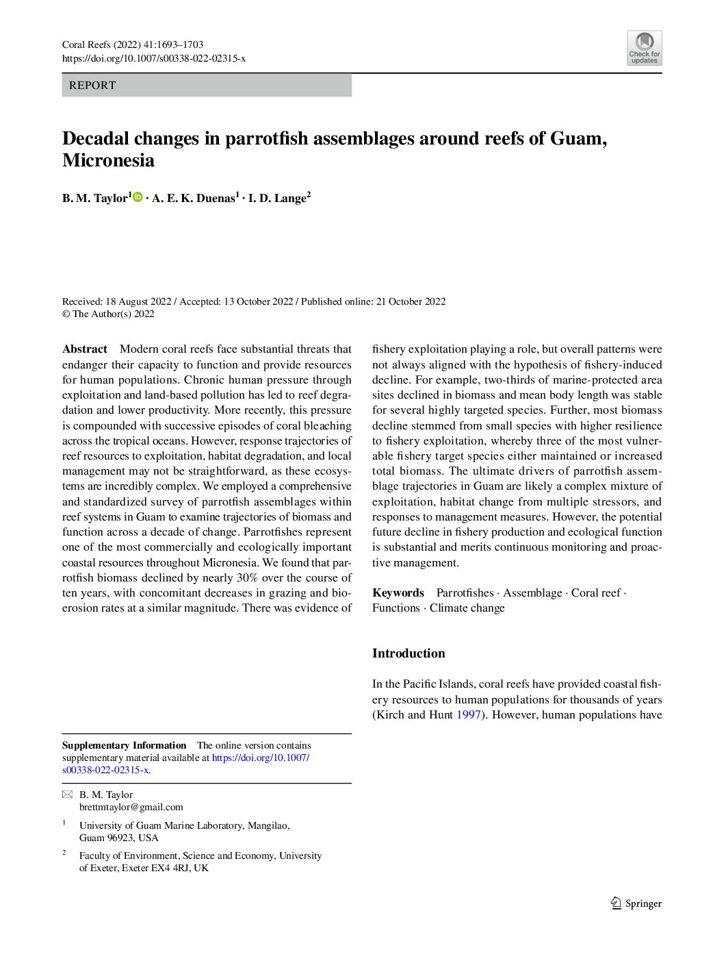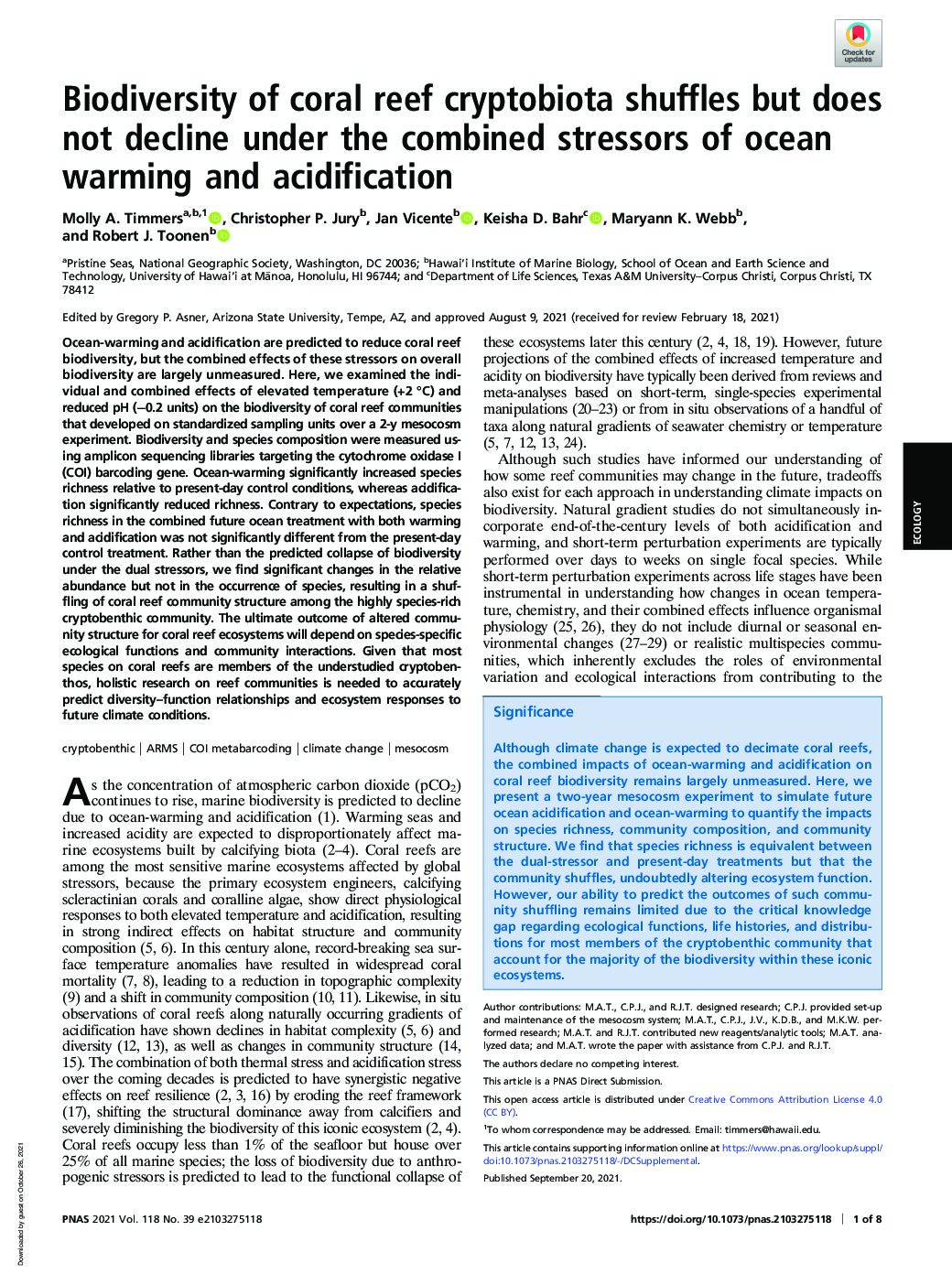Abstract: Over the past few decades, coral reef ecosystems have been lost at accelerated rates …
