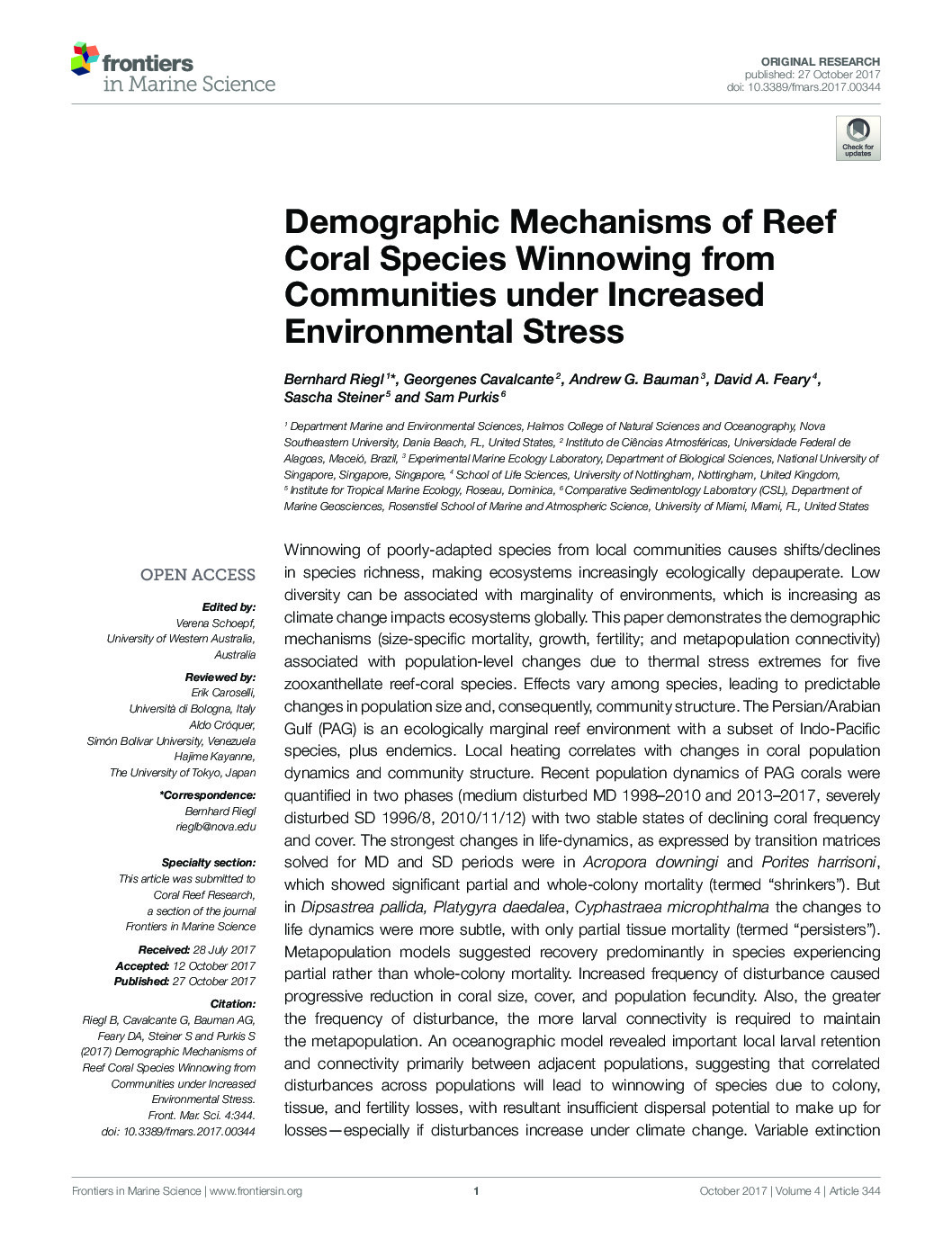Abstract: Following a series of mass-bleaching events that have seriously degraded coral reefs, notably the …