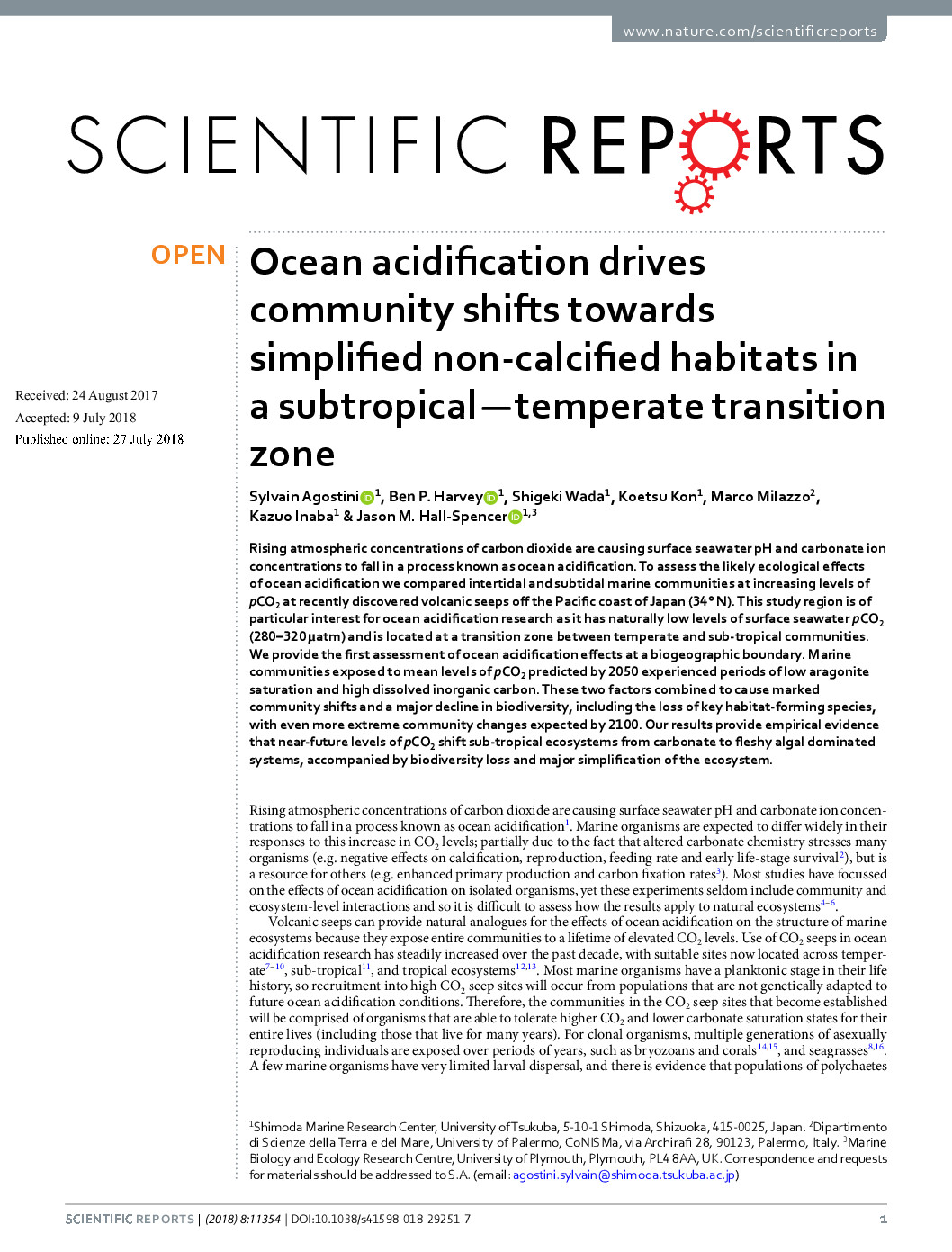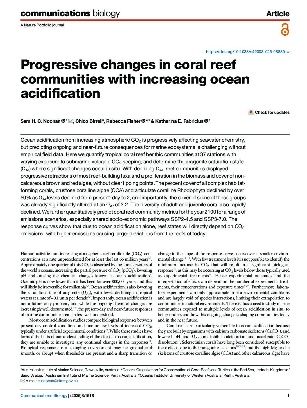 Abstract: Ocean acidification from increasing atmospheric CO2 is progressively affecting seawater chemistry, but predicting ongoing …