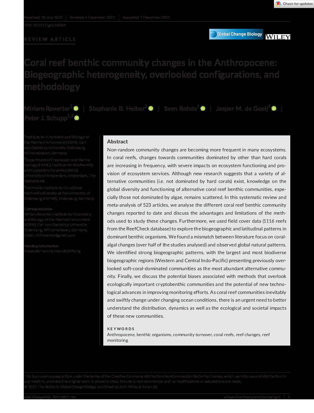 Abstract: Non- random community changes are becoming more frequent in many ecosystems. In coral reefs, …