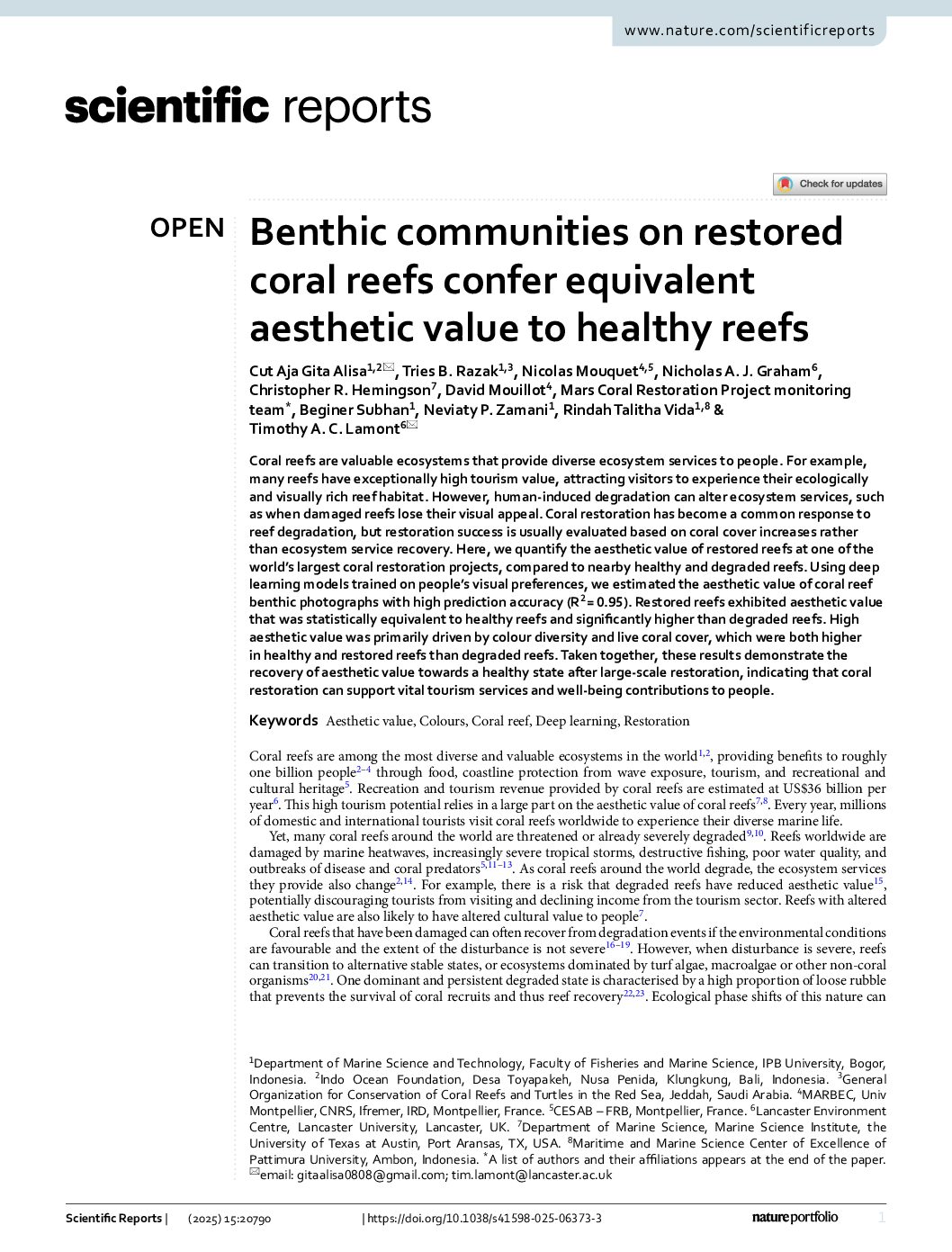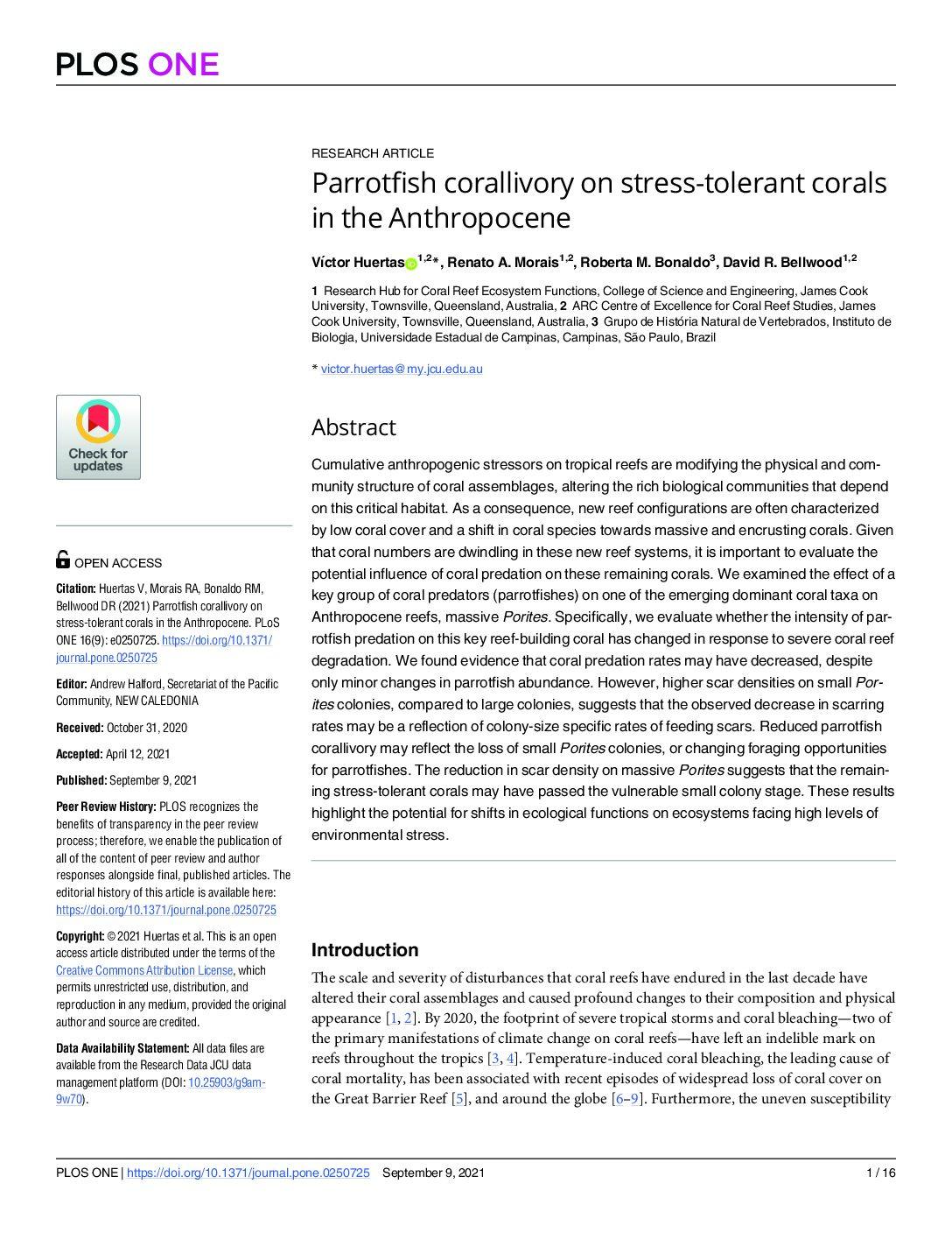 Abstract: Coral reefs are valuable ecosystems that provide diverse ecosystem services to people. For example, …