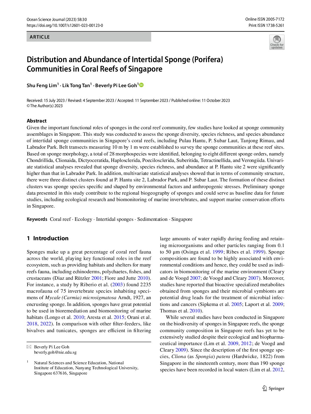 Abstract: Given the important functional roles of sponges in the coral reef community, few studies …