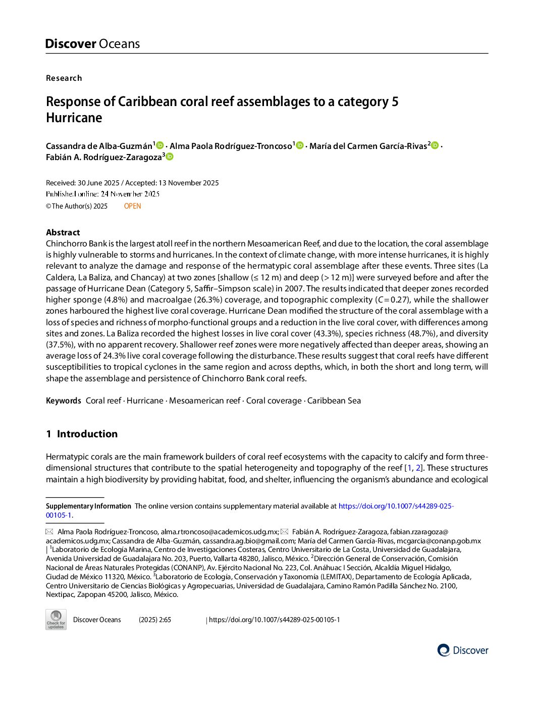 Abstract: Chinchorro Bank is the largest atoll reef in the northern Mesoamerican Reef, and due …