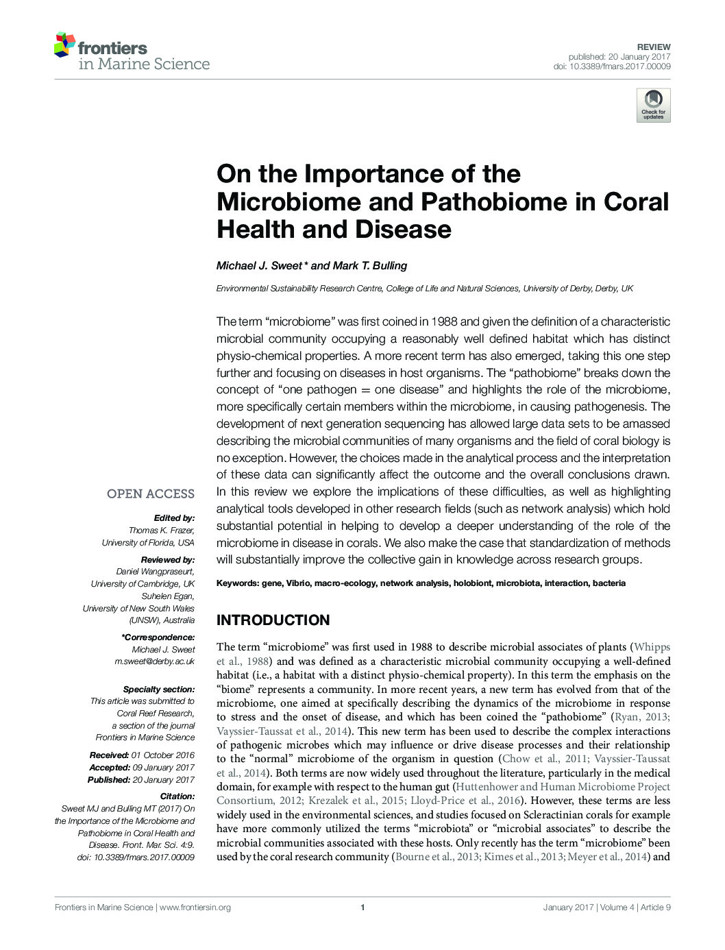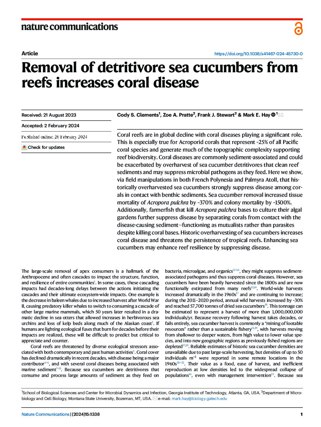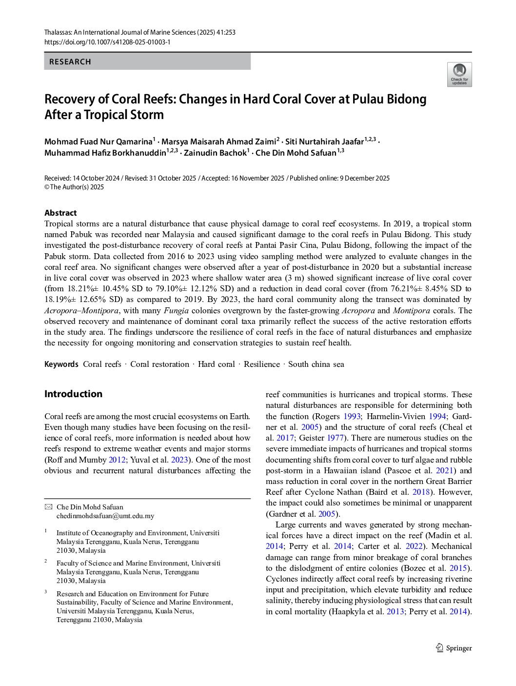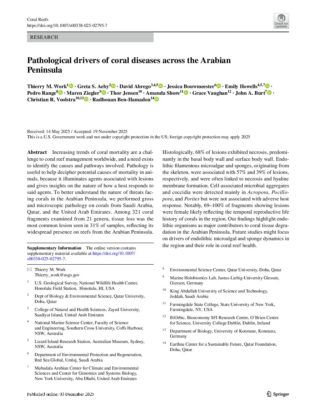 Abstract: Increasing trends of coral mortality are a challenge to coral reef management worldwide, and …