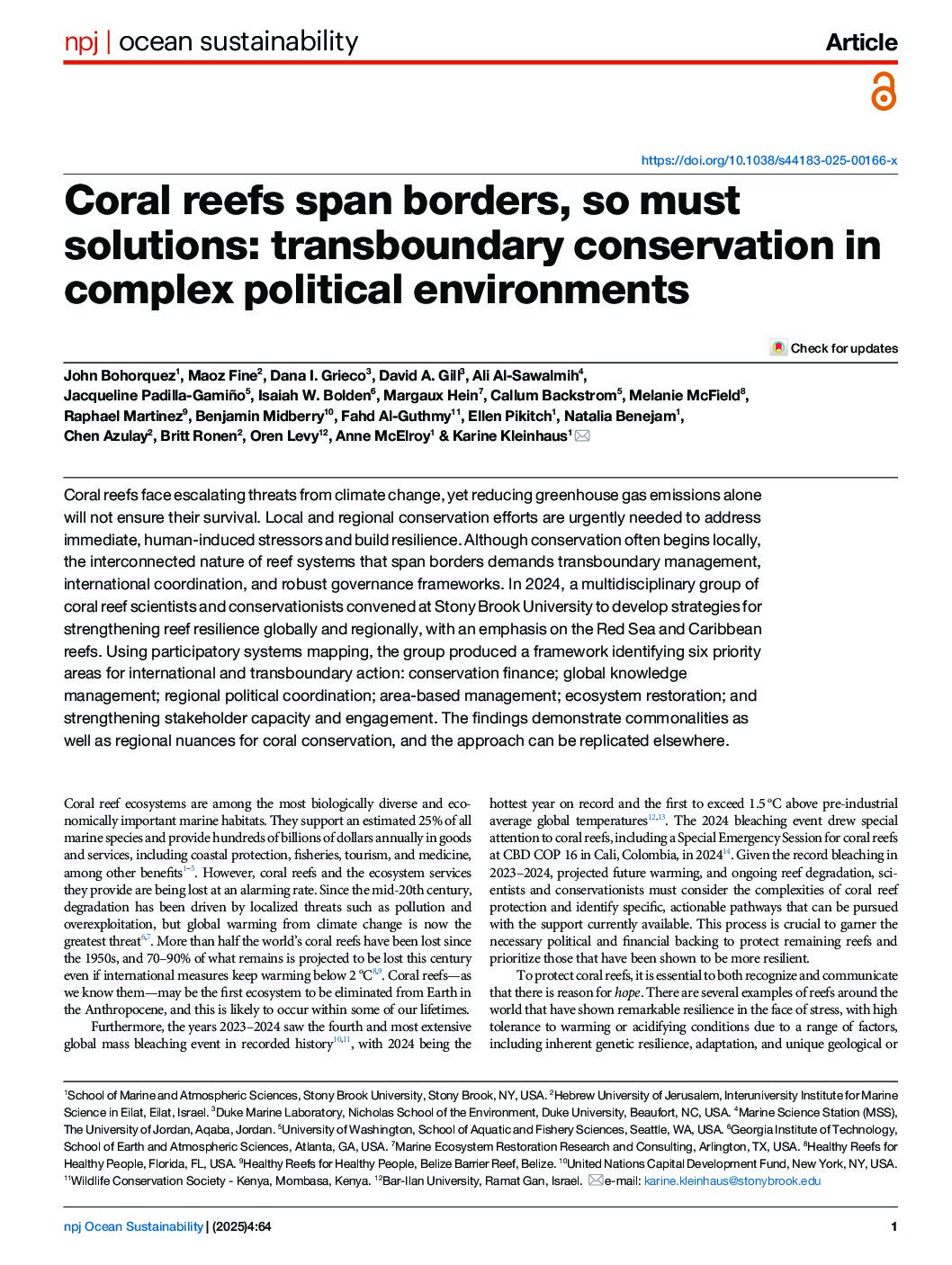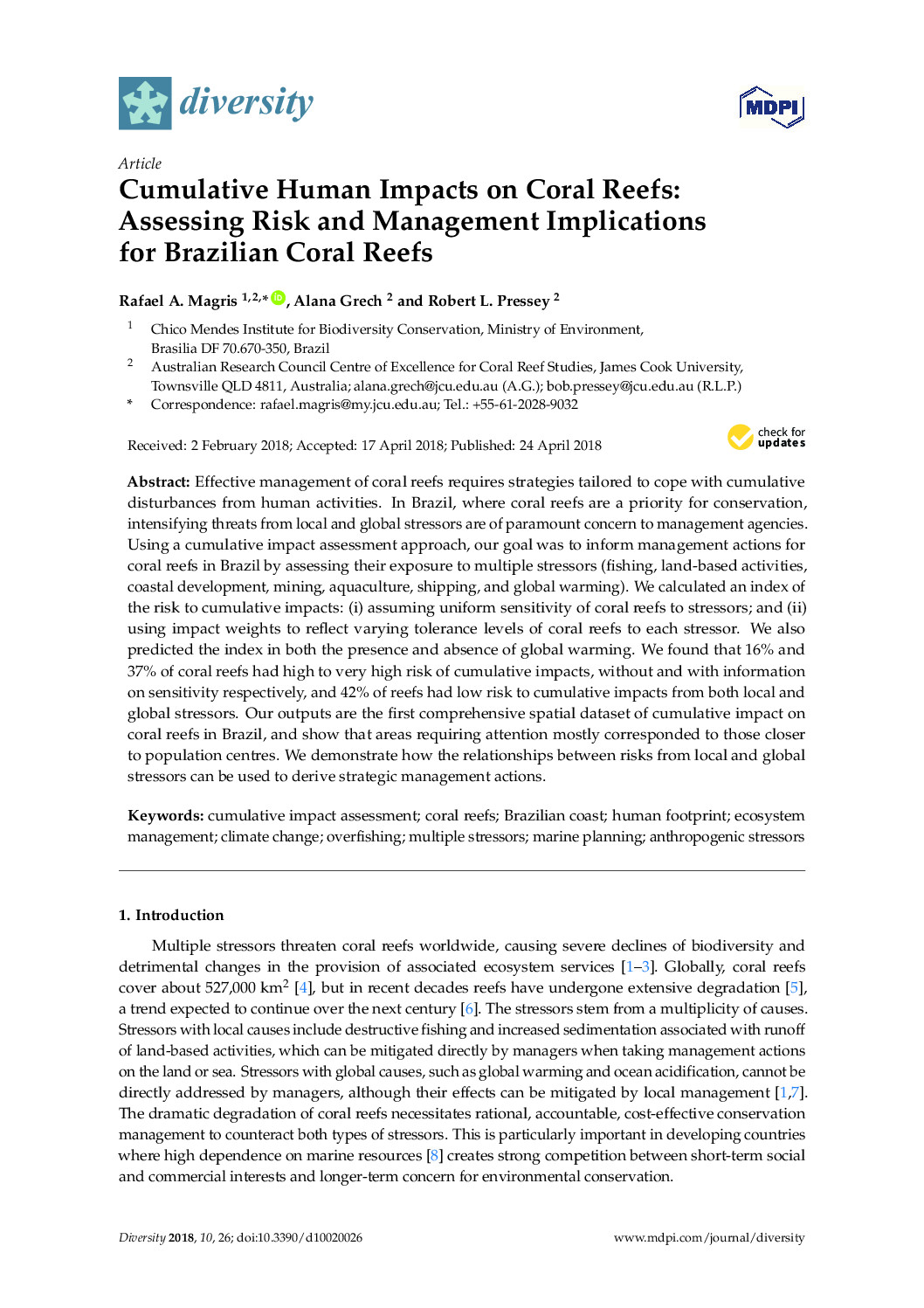Abstract: Coral reefs provide ecosystem goods and services for millions of people in the tropics, …