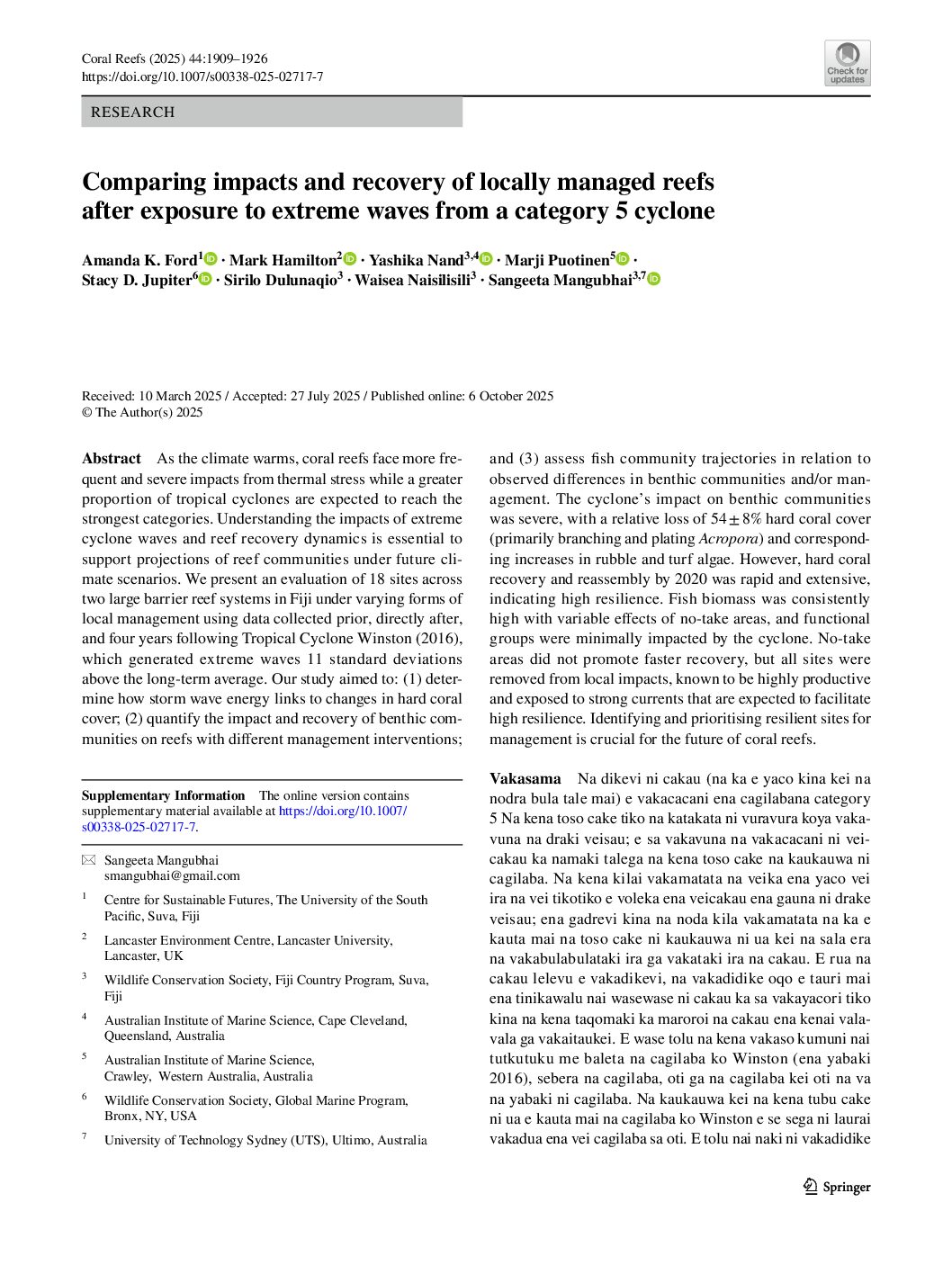 Abstract: Effective management of coral reefs requires strategies tailored to cope with cumulative disturbances from …