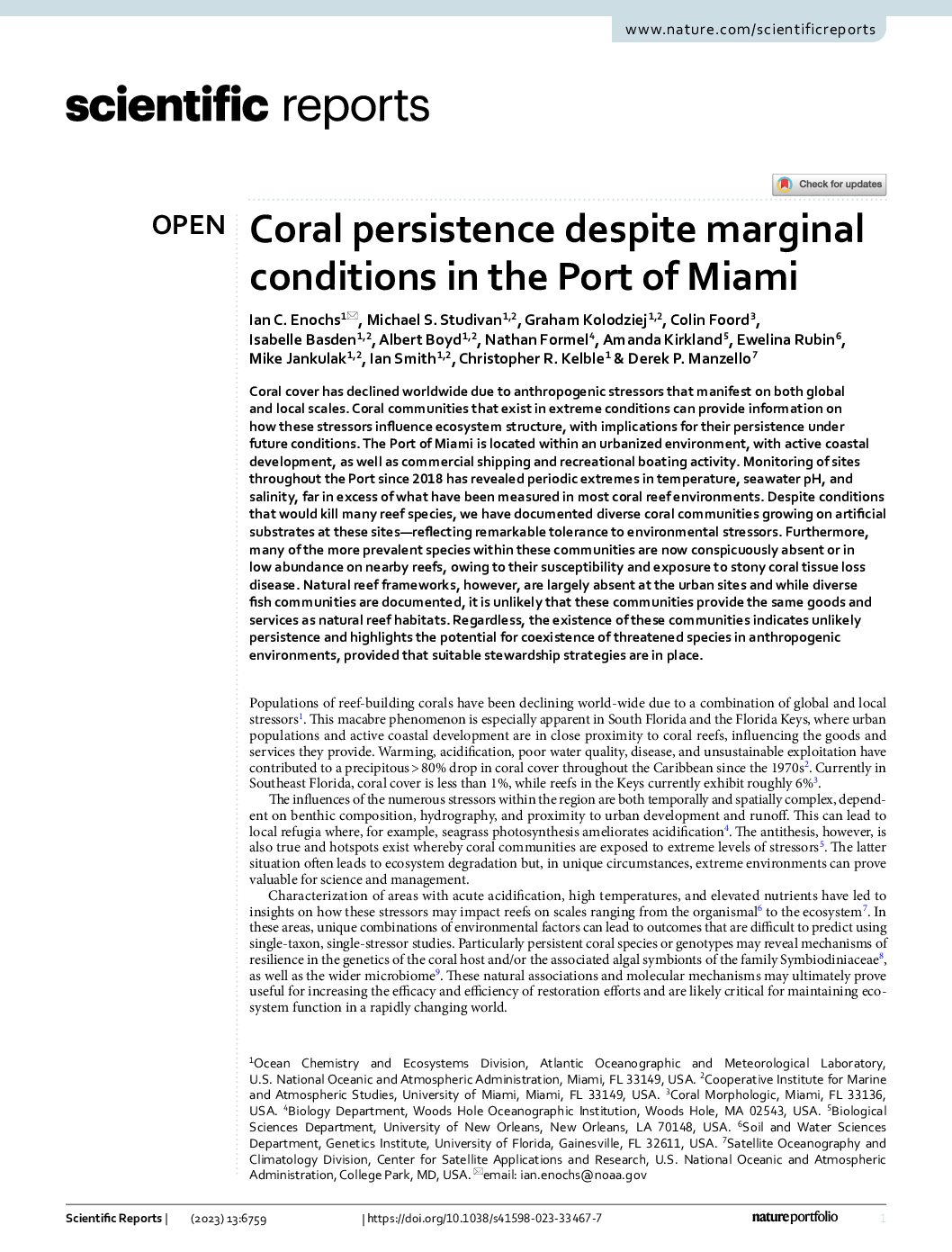 Abstract: Over the past few decades, coral reef ecosystems have been lost at accelerated rates …