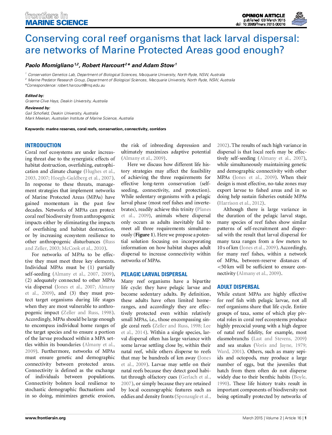 Abstract: Marine reserves have been advocated worldwide as conservation and fishery management tools. It is …