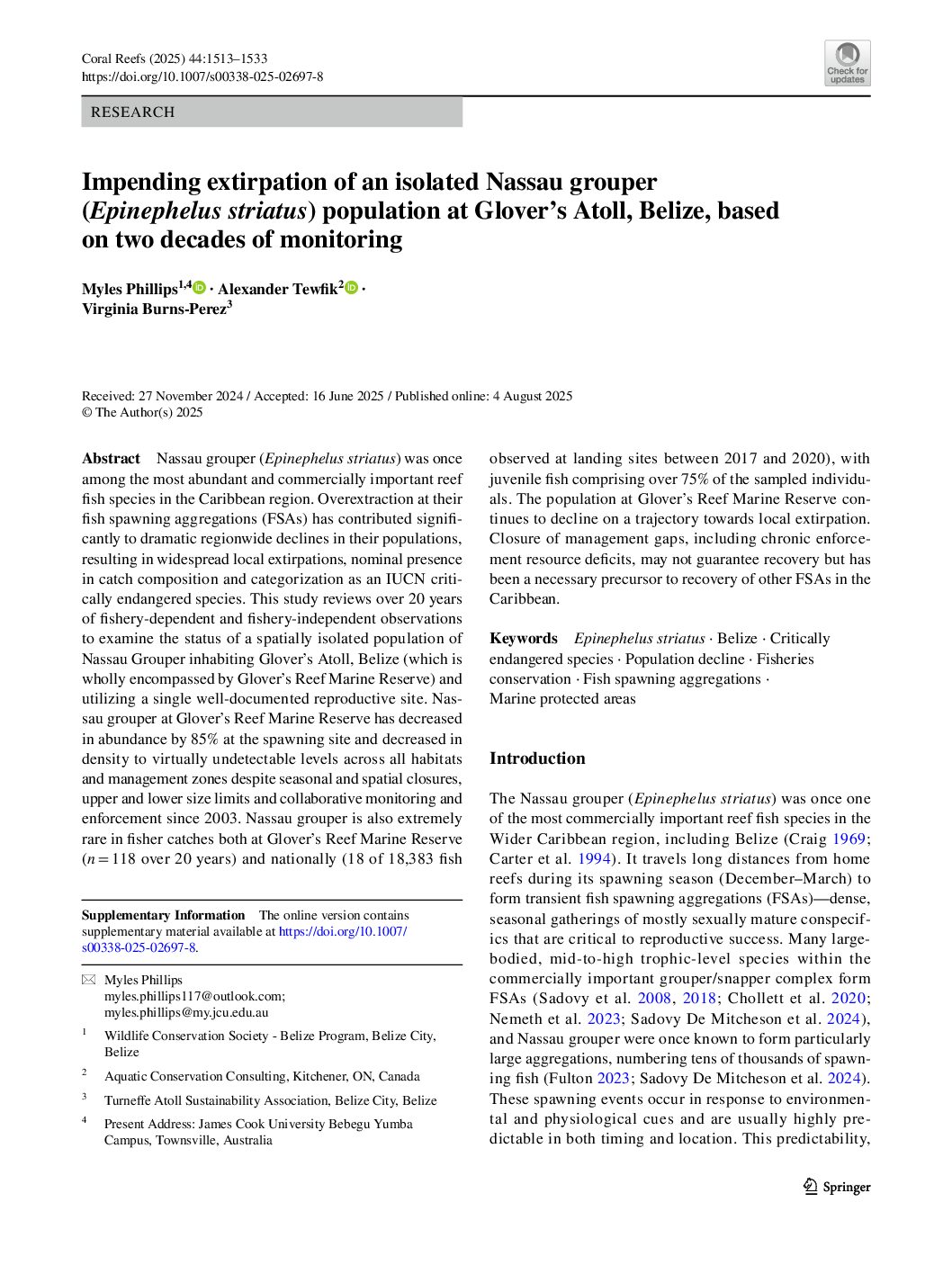 Abstract: Nassau grouper (Epinephelus striatus) was once among the most abundant and commercially important reef …