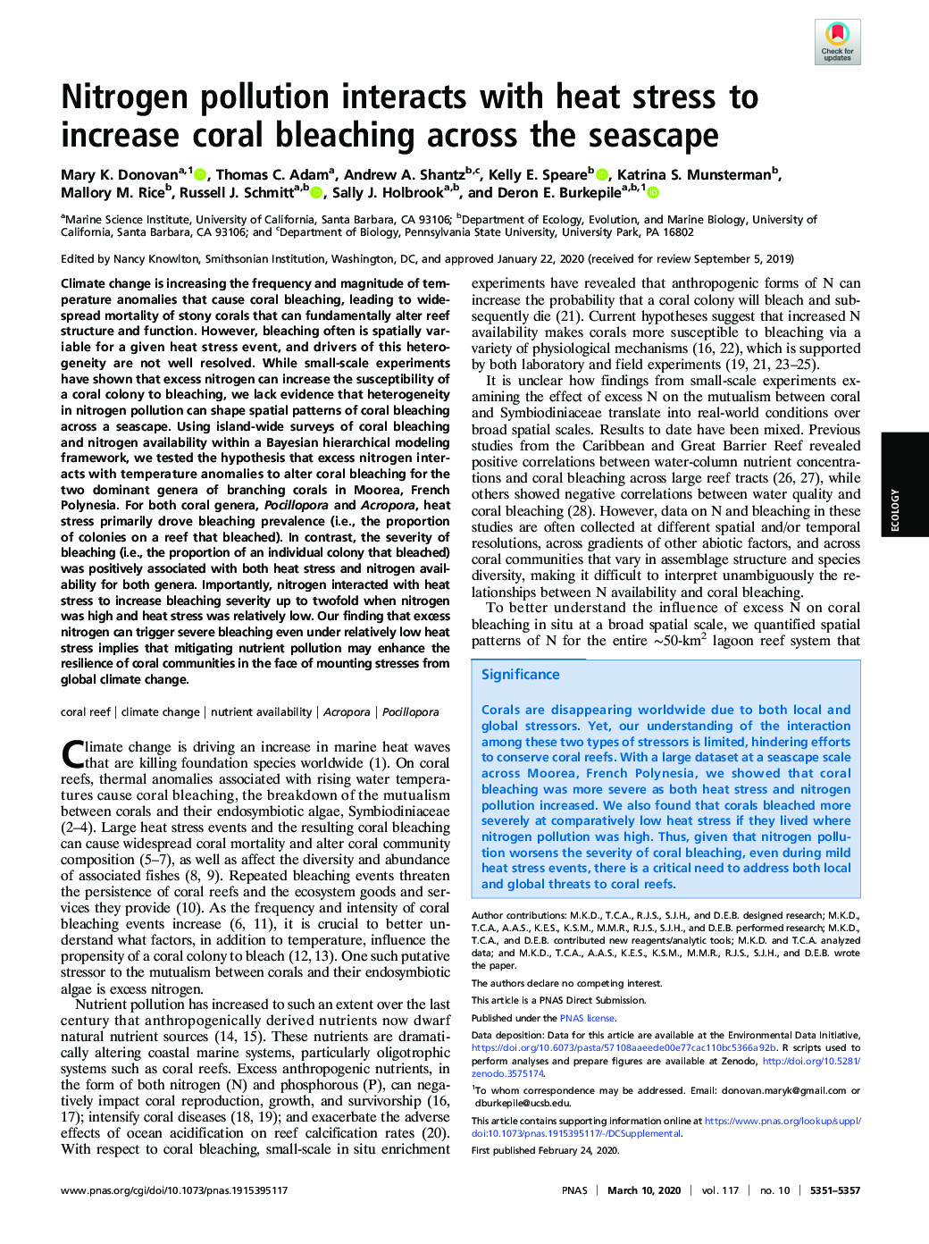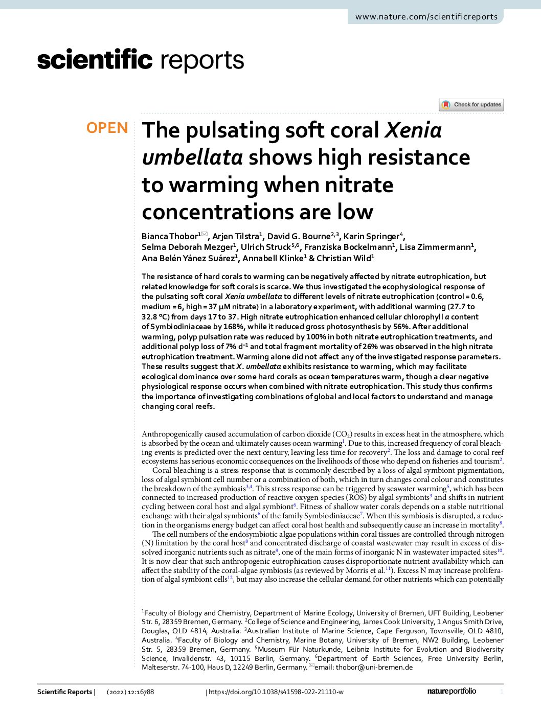 Abstract: The resistance of hard corals to warming can be negatively aơected by nitrate eutrophication, …