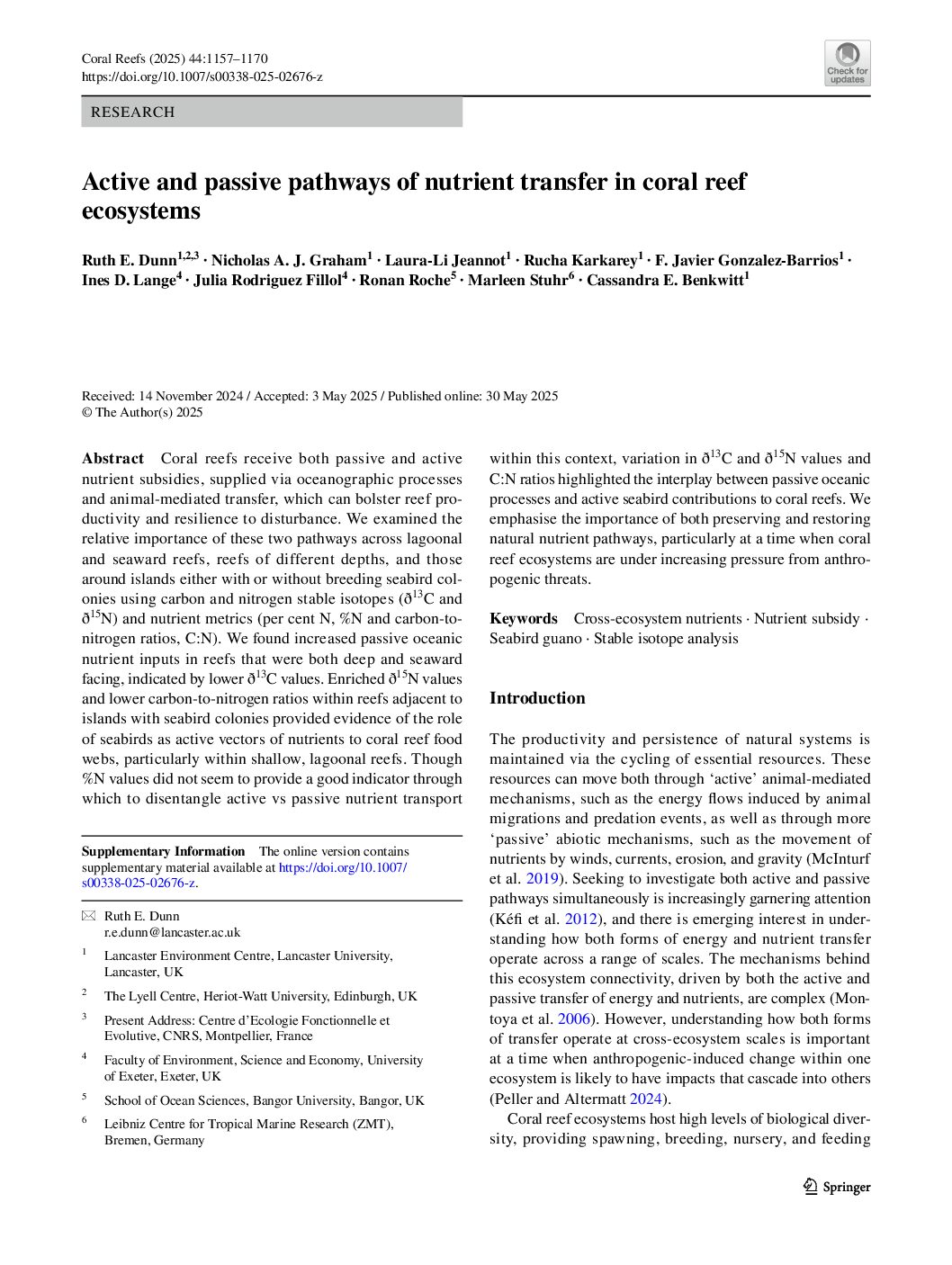 Abstract: Coral reefs receive both passive and active nutrient subsidies, supplied via oceanographic processes and …