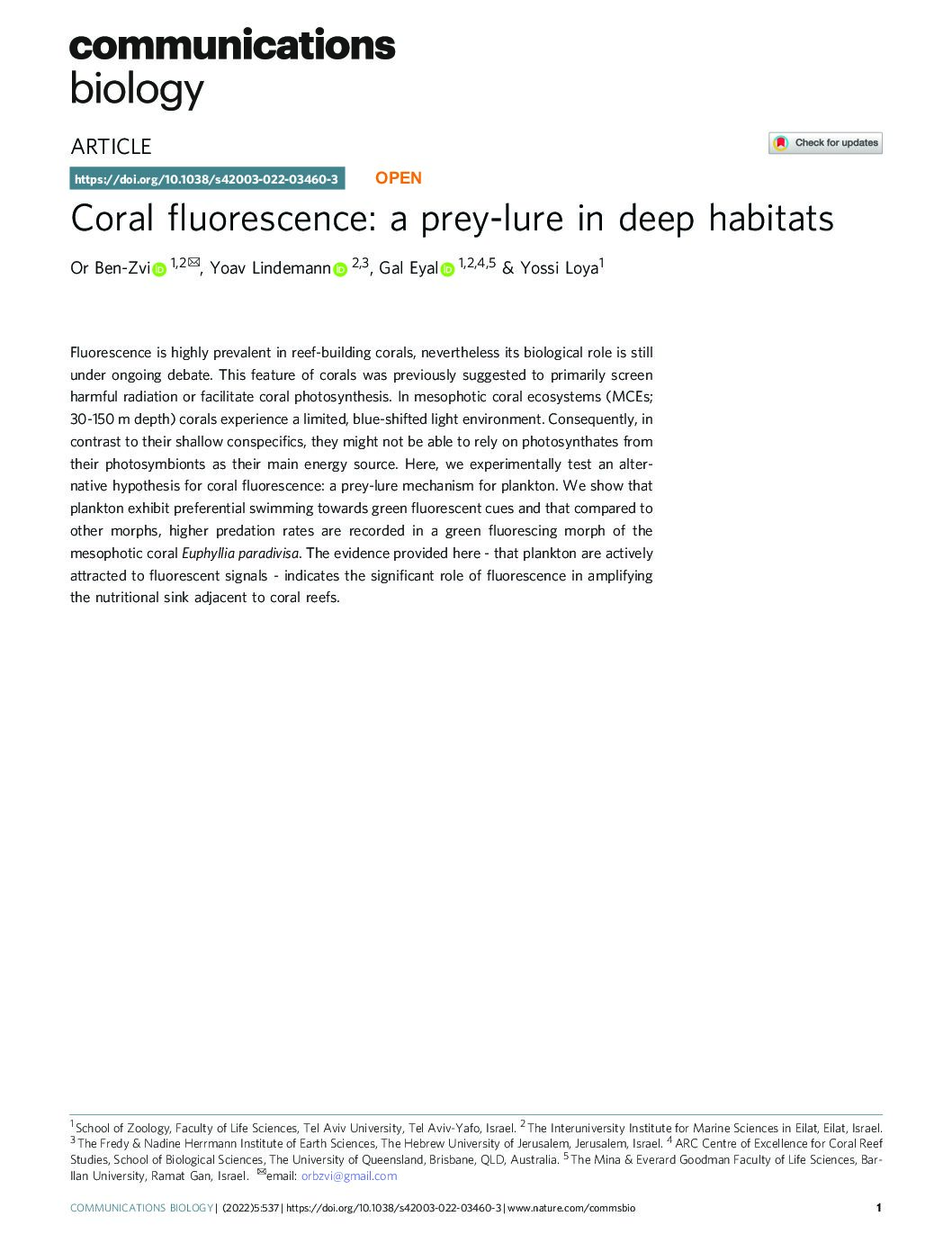 Abstract: Fluorescence is highly prevalent in reef-building corals, nevertheless its biological role is still under …
