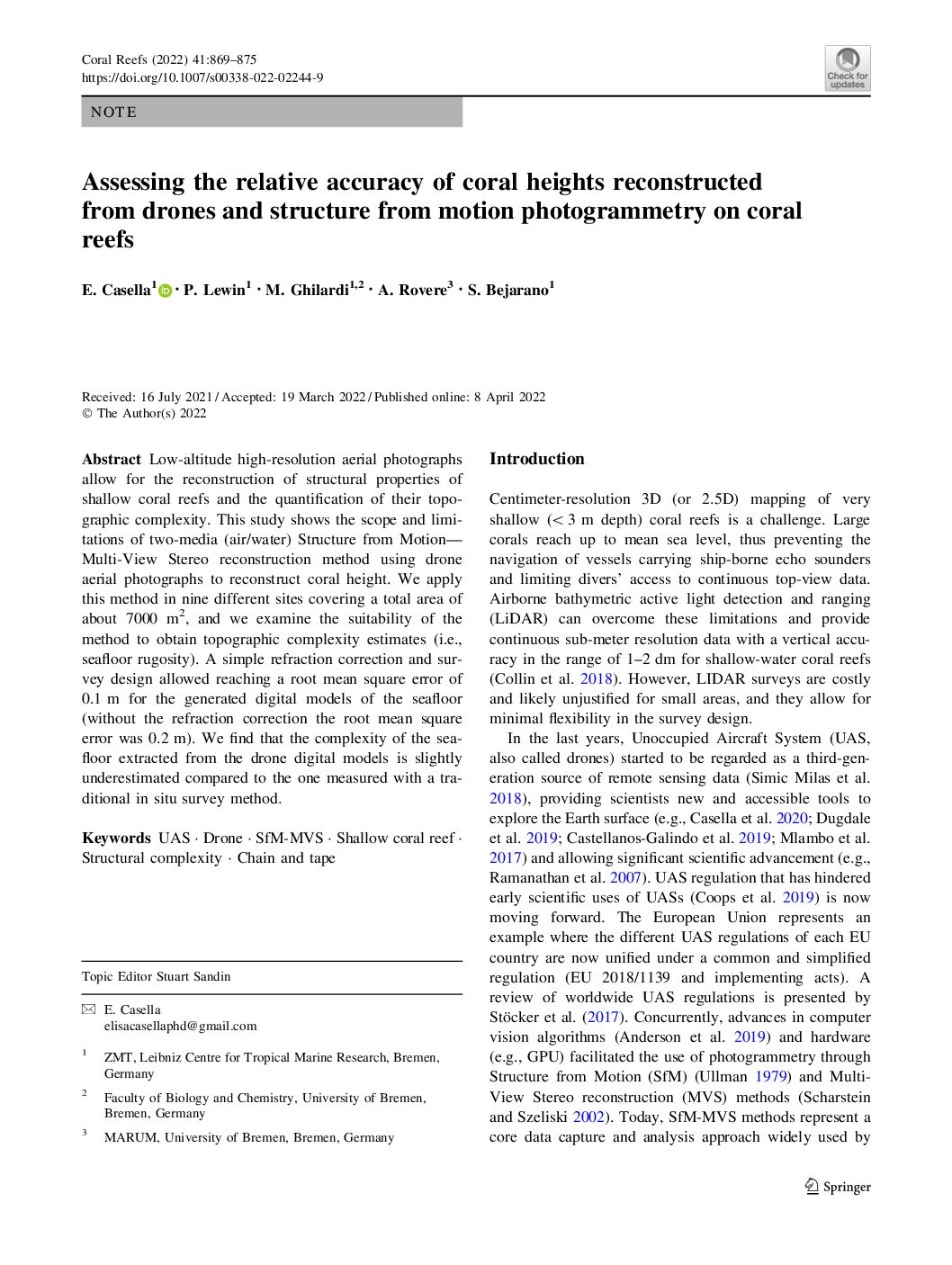 Abstract: Low-altitude high-resolution aerial photographs allow for the reconstruction of structural properties of shallow coral …