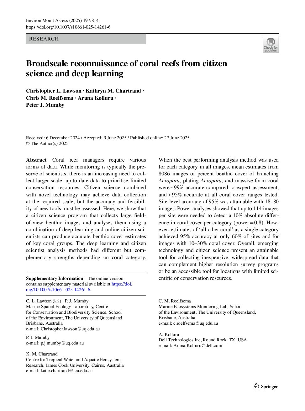 Abstract: Coral reef managers require various forms of data. While monitoring is typically the preserve …