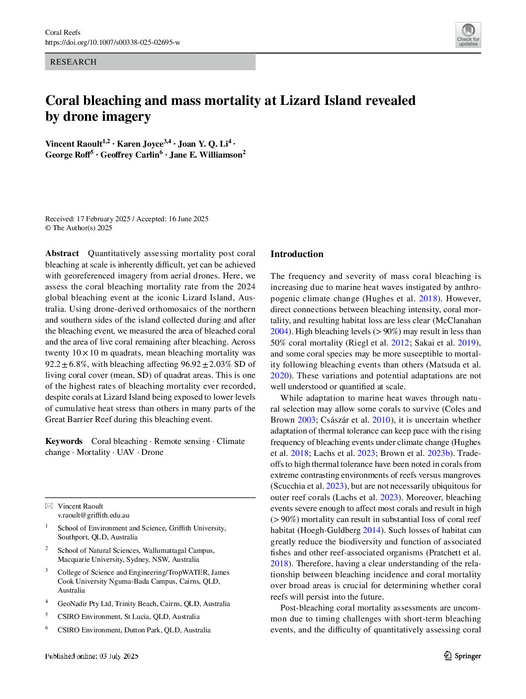 Abstract: Quantitatively assessing mortality post coral bleaching at scale is inherently difficult, yet can be …