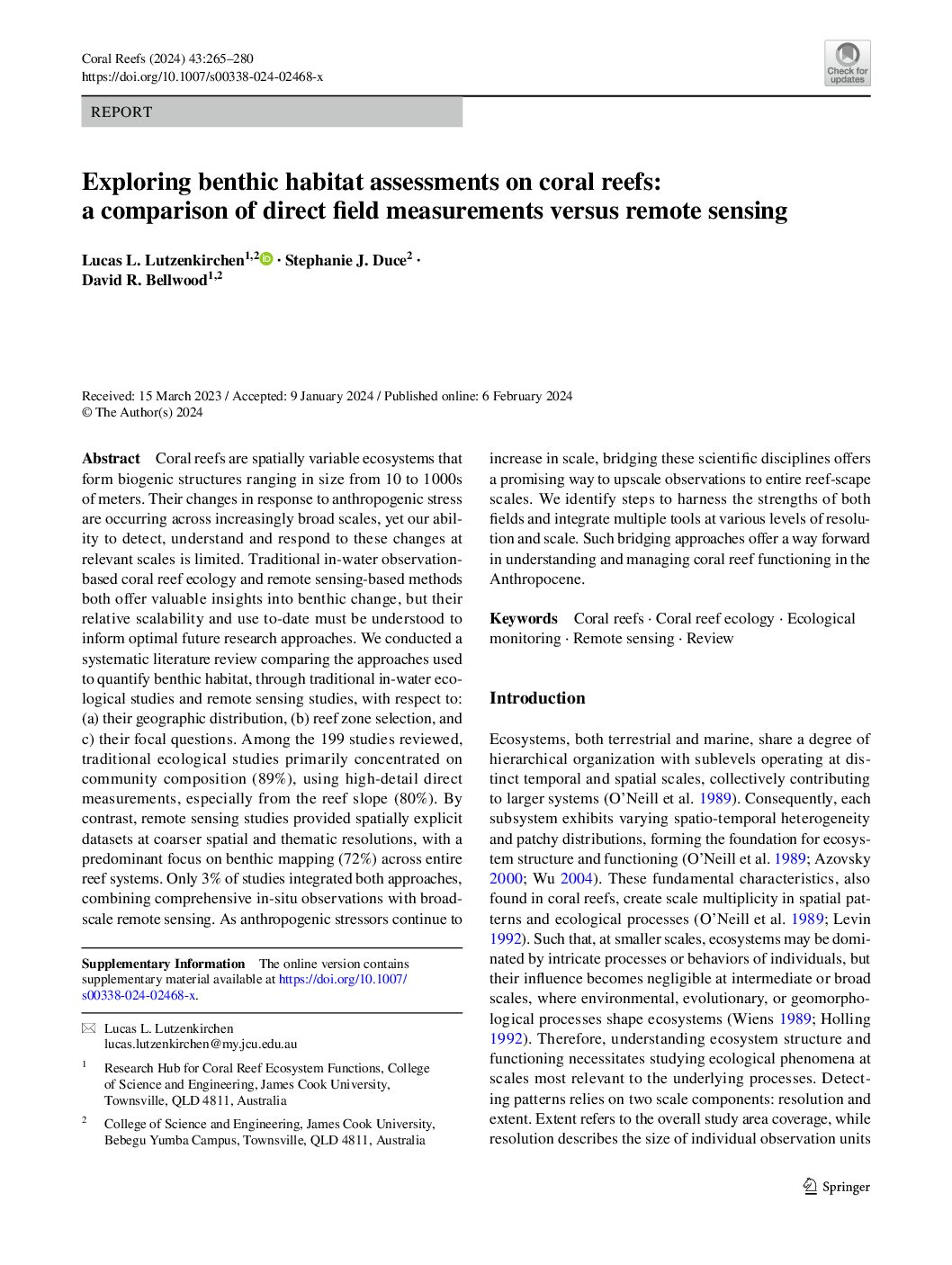 Abstract: Coral reefs are spatially variable ecosystems that form biogenic structures ranging in size from …