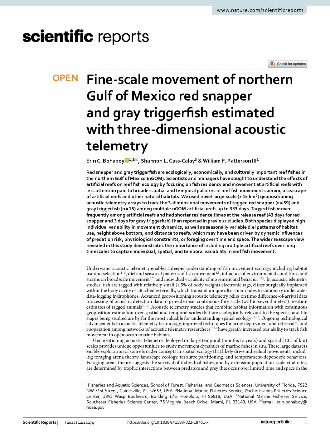 Abstract: Red snapper and gray triggerfish are ecologically, economically, and culturally important reef fishes in …