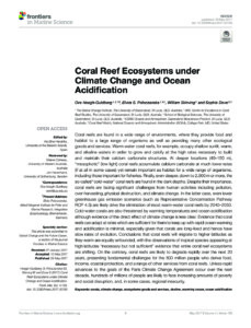 Coral reefs are found in a wide range of environments, where they provide food and habitat to a large range of organisms as well as providing many other ecological goods and services. Warm-water coral reefs, for example, occupy shallow sunlit, warm, and alkaline waters in order to grow and calcify at the high rates necessary to build and maintain their calcium carbonate structures. At deeper locations (40–150 m), “mesophotic” (low light) coral reefs accumulate calcium carbonate at much lower rates (if at all in some cases) yet remain important as habitat for a wide range of organisms, including those important for fisheries. Finally, even deeper, down to 2,000 m or more, the so-called “cold-water” coral reefs are found in the dark depths. Despite their importance, coral reefs are facing significant challenges from human activities including pollution, over-harvesting, physical destruction, and climate change. In the latter case, even lower greenhouse gas emission scenarios (such as Representative Concentration Pathway RCP 4.5) are likely drive the elimination of most warm-water coral reefs by 2040–2050. Cold-water corals are also threatened by warming temperatures and ocean acidification although evidence of the direct effect of climate change is less clear. Evidence that coral reefs can adapt at rates which are sufficient for them to keep up with rapid ocean warming and acidification is minimal, especially given that corals are long-lived and hence have slow rates of evolution. Conclusions that coral reefs will migrate to higher latitudes as they warm are equally unfounded, with the observations of tropical species appearing at high latitudes “necessary but not sufficient” evidence that entire coral reef ecosystems are shifting. On the contrary, coral reefs are likely to degrade rapidly over the next 20 years, presenting fundamental challenges for the 500 million people who derive food, income, coastal protection, and a range of other services from coral reefs. Unless rapid advances to the goals of the Paris Climate Change Agreement occur over the next decade, hundreds of millions of people are likely to face increasing amounts of poverty and social disruption, and, in some cases, regional insecurity.
