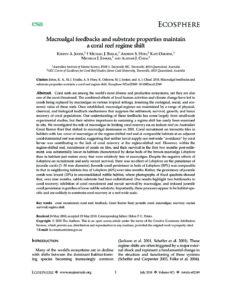 Coral reefs are among the world’s most diverse and productive ecosystems, yet they are also one of the most threatened. The combined effects of local human activities and climate change have led to corals being replaced by macroalgae in various tropical settings, lessening the ecological, social, and economic value of these reefs. Once established, macroalgal regimes are maintained by a range of physical, chemical, and biological feedback mechanisms that suppress the settlement, survival, growth, and hence recovery of coral populations. Our understanding of these feedbacks has come largely from small-scale experimental studies, but their relative importance in sustaining a regime shift has rarely been examined in situ. We investigated the role of macroalgae in limiting coral recovery on an inshore reef on Australia’s Great Barrier Reef that shifted to macroalgal dominance in 2001. Coral recruitment on terracotta tiles in habitats with low cover of macroalgae at the regime-shifted reef and at comparable habitats at an adjacent coral-dominated reef was similar, suggesting that neither larval supply nor reef-wide “avoidance” by coral larvae was contributing to the lack of coral recovery at the regime-shifted reef. However, within the regime-shifted reef, recruitment of corals on tiles, and their survival in the first two months post-settlement, was substantially lower in habitats characterized by dense beds of the brown macroalga Lobophora than in habitats just meters away that were relatively free of macroalgae. Despite the negative effects of Lobophora on recruitment and early recruit survival, there was no effect of Lobophora on the persistence of juvenile corals (1–50 mm diameter). Juvenile coral persistence in beds of Lobophora (50%) was comparable to that in neighboring habitats free of Lobophora (60%) over nine months. Rather, the persistence of juvenile corals was lowest (10%) in unconsolidated rubble habitat, where photographs of fixed quadrats showed that, over nine months, rubble substrate had been redistributed. Our results highlight two bottlenecks to coral recovery; inhibition of coral recruitment and recruit survival by macroalgae, and reduced juvenile coral persistence in patches of loose rubble substrate. Importantly, these processes appear to be habitat-specific and are unlikely to constrain coral recovery at a reef-wide scale.