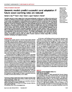Genomic Models Predict Successful Coral Adaption if Future Ocean Warming Rates are Reduced