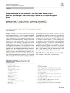 Globally, coral reefs are under threat, with many exhibiting degradation or a shift towards algal-dominated regimes following marine heat waves, and other disturbance events. Marginal coral reefs existing under naturally extreme conditions, such as turbid water reefs, may be more resilient than their clear water counterparts as well as offer some insight into how reefs could look in the future under climate change. Here, we surveyed 27 benthic habitats across an environmental stress gradient in the Exmouth Gulf region of north Western Australia immediately following a marine heatwave event. We used multidecadal remotely sensed turbidity (from an in-situ validated dataset) and temperature, to assess how these environmental drivers influence variability in benthic communities and coral morphology. Longterm turbidity and temperature variability were associated with macroalgal colonisation when exceeding a combined threshold. Coral cover was strongly negatively associated with temperature variability, and positively associated with depth, and wave power, while coral morphology diversity was positively associated with turbidity. While moderate turbidity (long-term average ~ 2 mg/L suspended matter) appeared to raise the threshold for coral bleaching and macroalgal dominance, regions with higher temperature variability (> 3.5 °C) appeared to have already reached this threshold. The region with the least turbidity and temperature variability had the highest amount of coral bleaching from a recent heatwave event and moderate levels of both these variables may confer resilience to coral reefs.