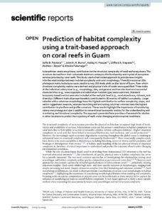 Scleractinian corals are primary contributors to the structural complexity of coral reef ecosystems. The structure derived from their carbonate skeletons underpins the biodiversity and myriad of ecosystem services provided by coral reefs. This study used a trait‑based approach to provide new insights into the relationships between habitat complexity and coral morphology. Three‑Dimensional (3D) photogrammetry techniques were used to survey 208 study plots on the island of Guam, from which structural complexity metrics were derived and physical traits of corals were quantified. Three traits at the individual colony level (e.g., morphology, size, and genera) and two site‑level environmental characteristics (e.g., wave exposure and substratum‑habitat type) were examined. Standard taxonomy‑based metrics were also included at the reef‑plot level (e.g., coral abundance, richness, and diversity). Diơerent traits disproportionately contributed to 3D metrics of habitat complexity. Larger colonies with a columnar morphology have the highest contribution to surface complexity, slope, and vector ruggedness measure, whereas branching and encrusting columnar colonies have the highest contribution to planform and profile curvature. These results highlight the importance of considering colony morphology and size in addition to conventional taxonomic metrics for the understanding and monitoring reef structural complexity. The approach presented here provides a framework for studies in other locations to predict the trajectory of reefs under changing environmental conditions.