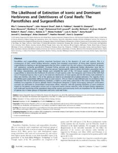 The Likelihood of Extinction of Iconic and Dominant Herbivores and Detritivores of Coral Reefs: The Parrotfishes and Surgeonfishes